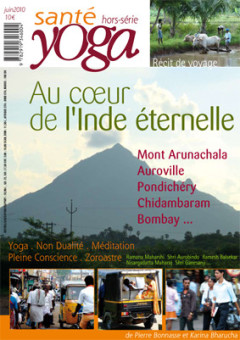 "Notre Hors-Série illustré de 40 pages paraîtra en mai. De l’enseignement de la non dualité et de la philosophie du yoga à la pratique populaire du rituel hindou, en passant par un éclairage contemporain sur la vie quotidienne des parsis et la figure ancestrale de Zoroastre, ce premier Hors-Série de Santé Yoga vous invite, étape par étape, à vivre le mystère qui pousse chaque année des milliers de touristes et de pèlerins en quête de sagesse sur les folles routes de l’Inde.